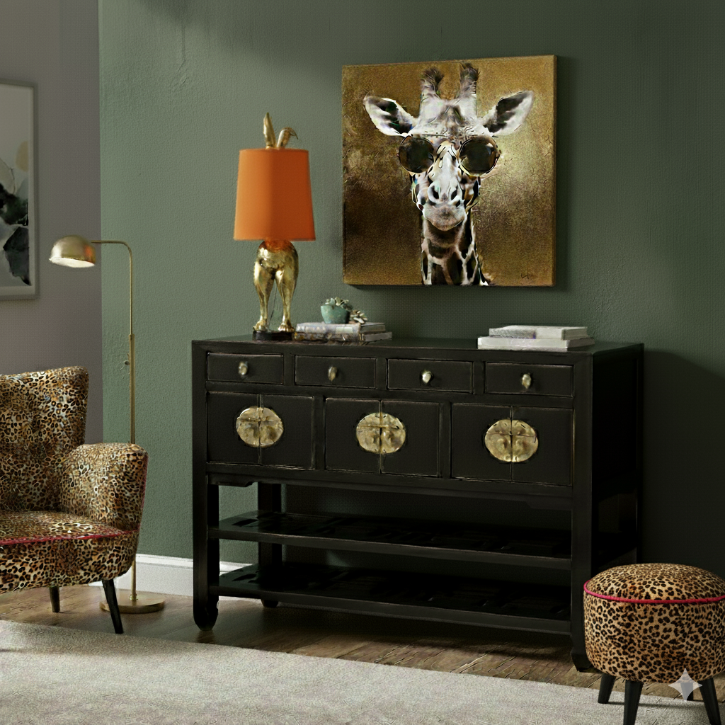 Die majestätische Giraffe, auf schimmerndem Goldton, strahlt Anmut und Stil aus und zieht alle Blicke auf sich. Die lebendigen Farben und die detailreiche Ausführung machen dieses Bild zu einem einzigartigen Kunstwerk, das sowohl in modernen als auch in klassischen Einrichtungsstilen harmonisch zur Geltung kommt.